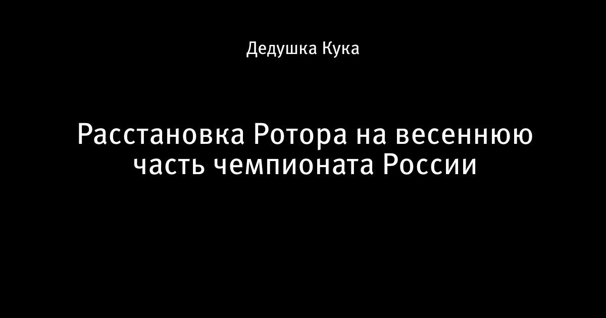 Ну вот, три первых приобретения известны, на подходе четвертое и пятое, самая пора начинать обсуждение состава, которым Ротор при дяде Федоре, собственно, будет играть весеннюю часть первенства Футбольной национальной лиги. На текущий момент оптимальной мне представляется такая стартовая расстановка команды: Денис Пчелинцев; Виталий Устинов, Дмитрий Гузь, Абдель Ламанж, Петр Тен; Максим Яковлев, Семен Фомин; Андрей Михеев, Хорен Байрамян, Алексей Пугин; нападающий, с которым идут переговоры.