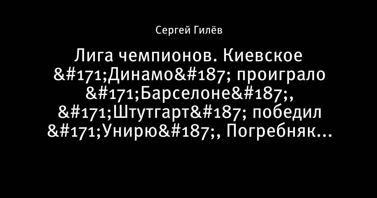 Лига чемпионов. Киевское «Динамо» проиграло «Барселоне», «Штутгарт» победил «Унирю», Погребняк забил гол