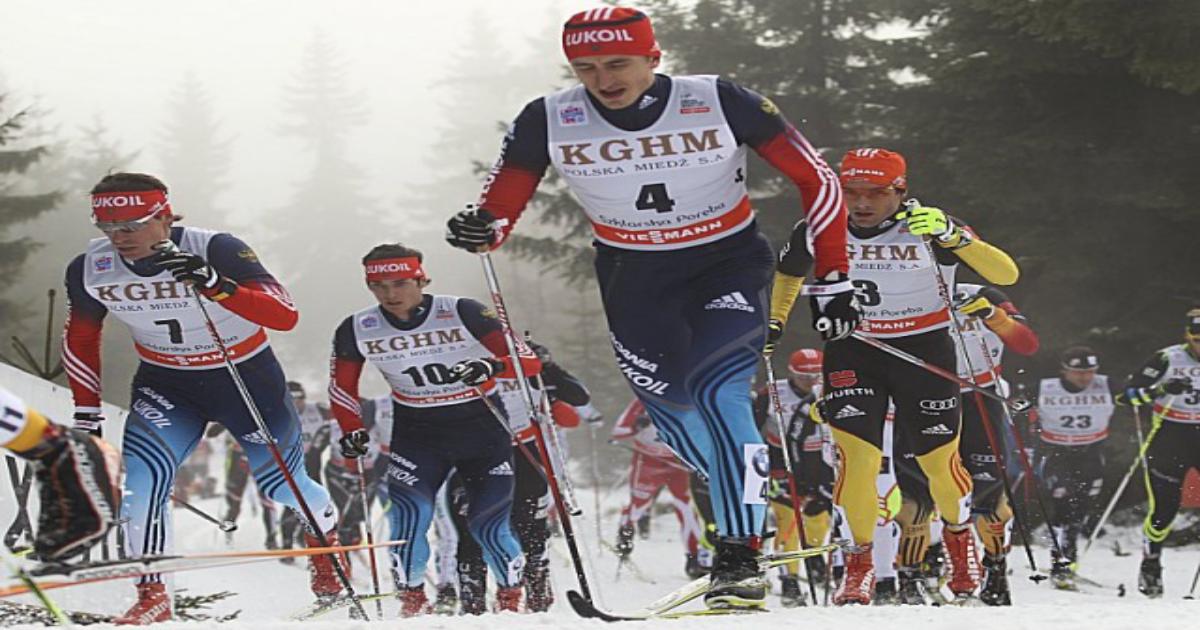 Классический масс-старт в Шклярска Поремба: Максим Вылегжанин, Евгений Белов, Станислав Волженцев