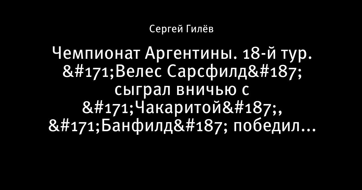 11 декабря 2009, 02:42 Чемпионат Аргентины. 18-й тур. «Велес Сарсфилд» сыграл вничью с «Чакаритой», «Банфилд» победил «Тигре» Уракан Бока Хуниорс 0:0 Колон Годой 1:0 Индепендьенте Архентинос Хуниорс 1:1 Сан-Лоренсо Ланус 0:1 Химнасиа Ньюэллс Олд Бойз 0:2 Банфилд Тигре 1:0 Автор Сергей Гилёв Этот пост опубликован в блоге на Трибуне Sports.ru. Присоединяйтесь к крупнейшему сообществу спортивных болельщиков! Другие посты блога Разборки в олимпийском Париже