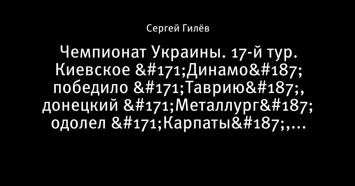 Чемпионат Украины. 17-й тур. Киевское «Динамо» победило «Таврию», донецкий «Металлург» одолел «Карпаты», «Шахтер» «Ильичевец»