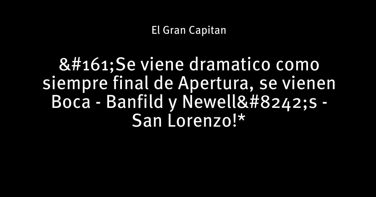 ¡Se viene dramatico como siempre final de Apertura, se vienen Boca - Banfild y Newell′s - San Lorenzo!*