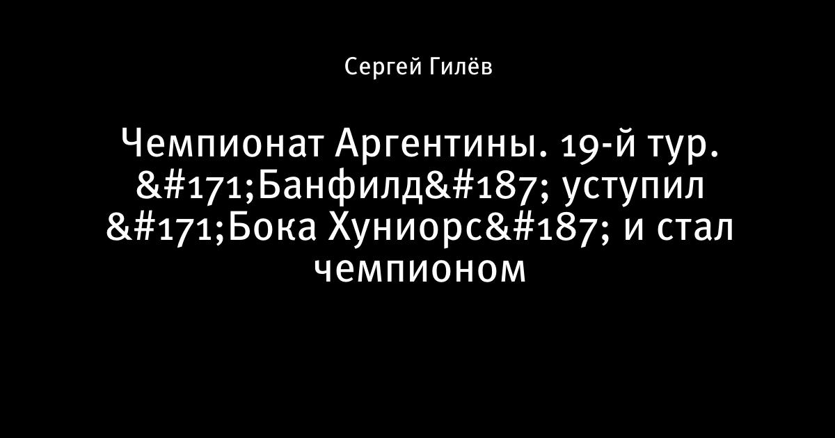 14 декабря 2009, 01:48 Чемпионат Аргентины. 19-й тур. «Банфилд» уступил «Бока Хуниорс» и стал чемпионом Бока Хуниорс Банфилд 2:0 1:0 Палермо (7, пенальти), 2:0 Палермо (61) Ньюэллс Олд Бойз Сан-Лоренсо 0:2 0:1 Бордагарай (10), 0:2 Бордагарай (68) Автор Сергей Гилёв Этот пост опубликован в блоге на Трибуне Sports.ru. Присоединяйтесь к крупнейшему сообществу спортивных болельщиков! Другие посты блога Разборки в олимпийском Париже