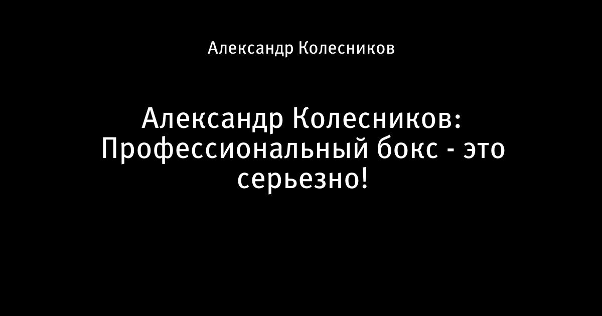 Александр Колесников: Профессиональный бокс - это серьезно!