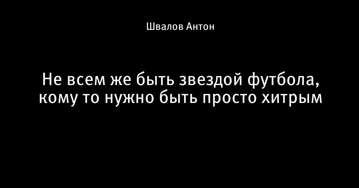 30 января 2014, 07:42 Не всем же быть звездой футбола, кому то нужно быть просто хитрым 1 Автор Швалов Антон Этот пост опубликован в блоге на Трибуне Sports.ru. Присоединяйтесь к крупнейшему сообществу спортивных болельщиков! Другие посты блога Телевизор 3.0