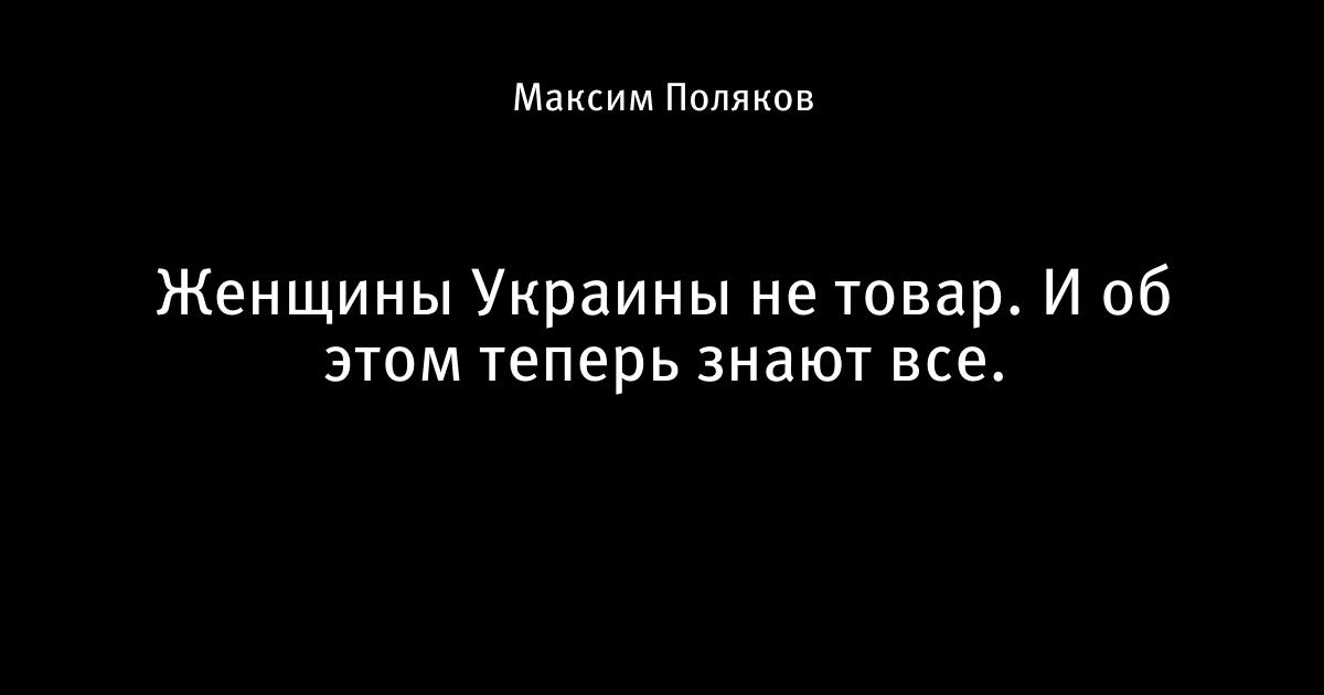 Женщины Украины не товар. И об этом теперь знают все.