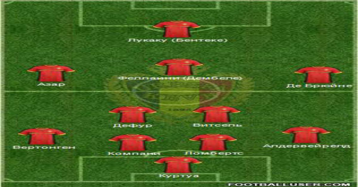 Куртуа, Миньоле, Вертонген, Вермален, Алдервейрелд, Де Брюйне, Дембеле, Миральяс, Азар, Шадли, Бентеке, Витсель, Фелайини, Мертенс, Лукаку