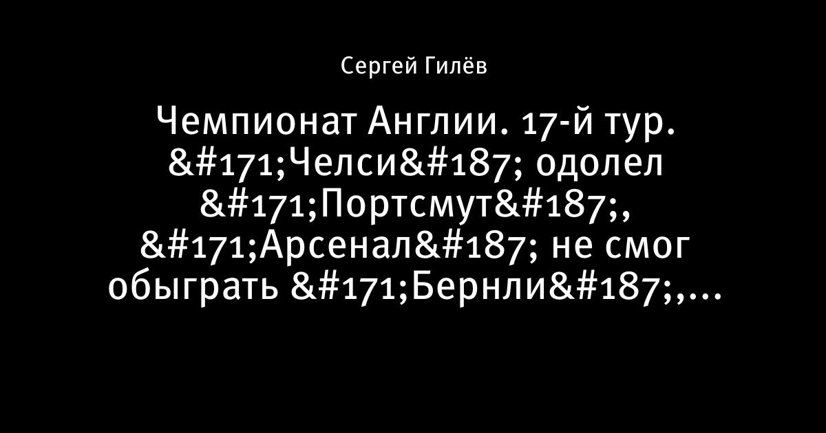 Чемпионат Англии. 17-й тур. «Челси» одолел «Портсмут», «Арсенал» не смог обыграть «Бернли», «Тоттенхэм» разгромил «Манчестер Сити»