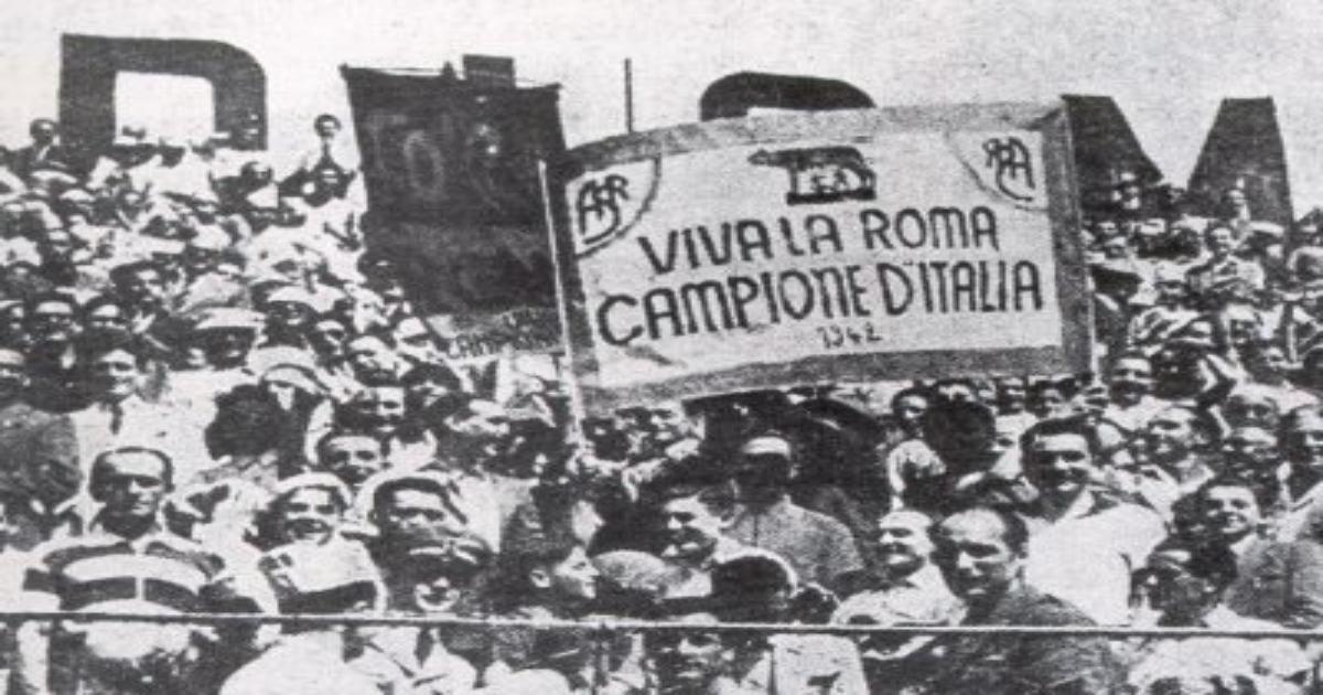 Состав Ромы 1941-42 (Подпись под фото. Сверху вниз, слева-направо (далее перечисление). На фото отсутствуют Di Pasquale, Bonomi e Acerbi, которые сыграли немаловажную роль в завоевании скудетто).
