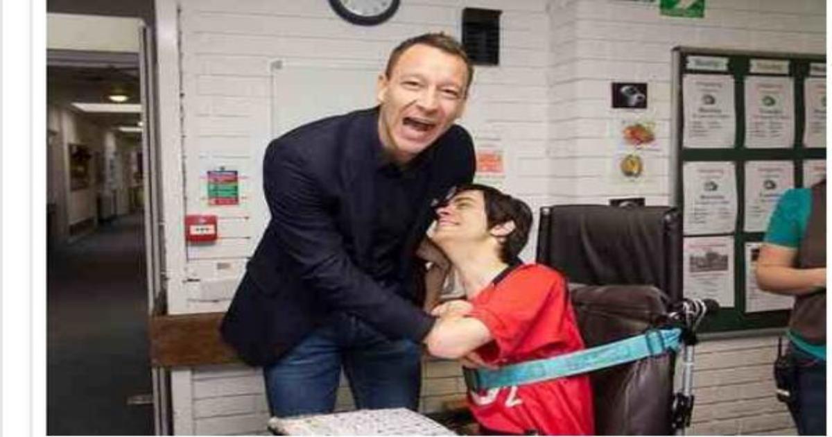 На фото Джон Терри с мальчиком болеющим за «Арсенал».Джон не так давно посещал клинику для людей с ограниченными возможностями,где и встретился с больным мальчиком.