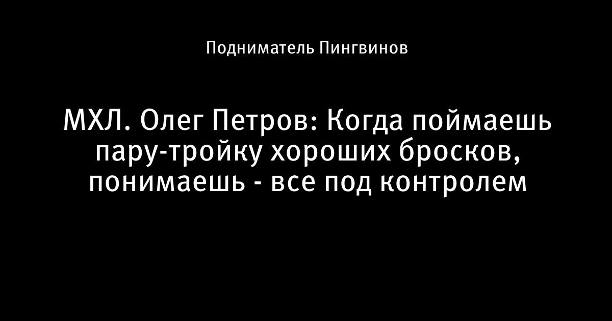 МХЛ. Олег Петров: Когда поймаешь пару-тройку хороших бросков, понимаешь - все под контролем