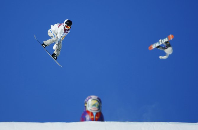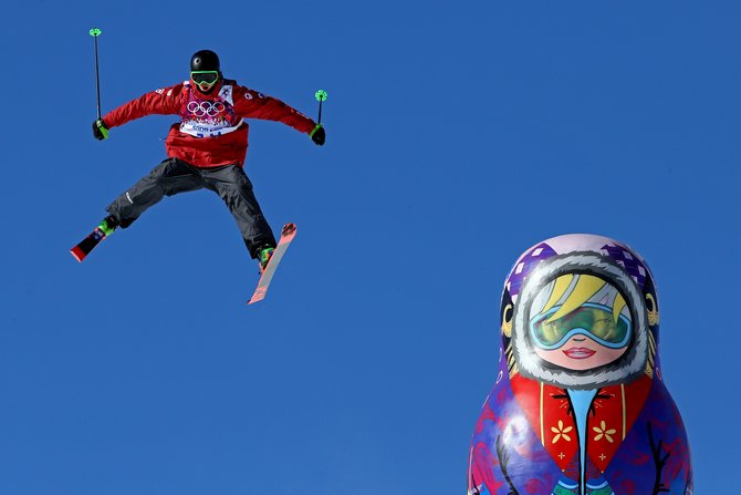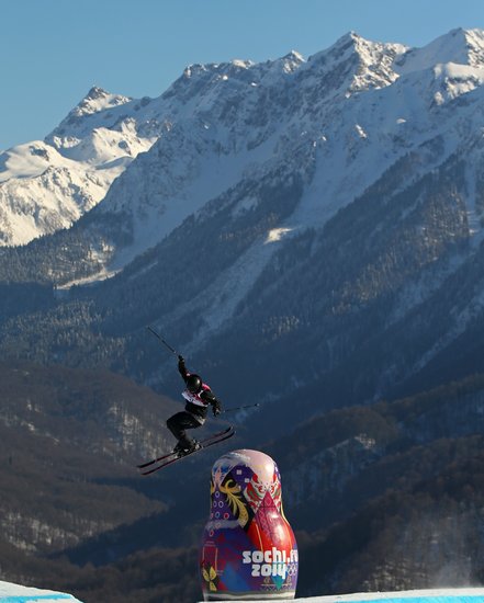 Несколько отличных кадров с тренировки сноубордистов на фоне сочинской матрешки.