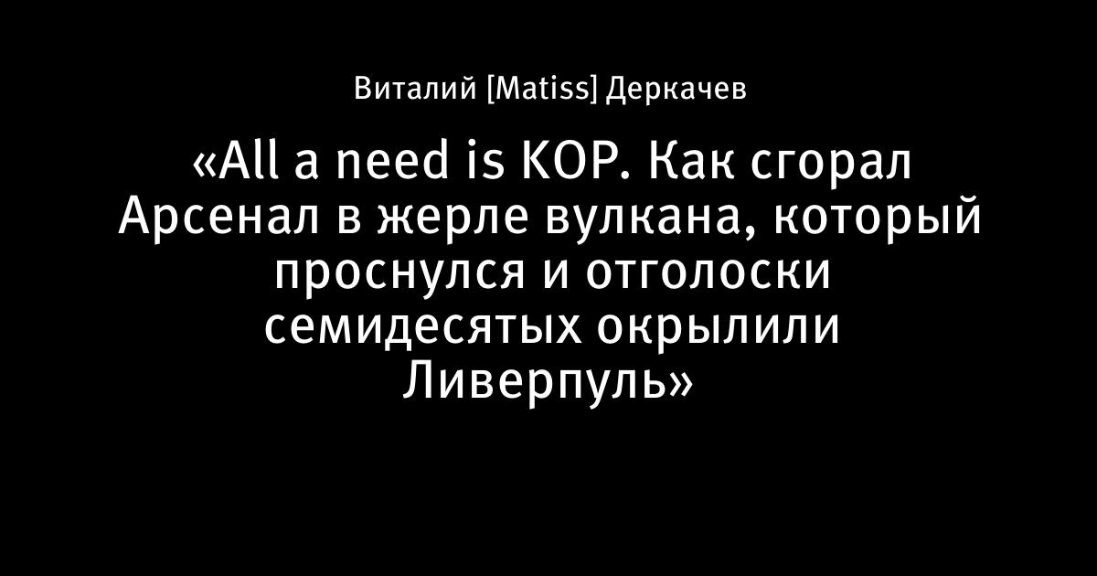 «All a need is KOP. Как сгорал Арсенал в жерле вулкана, который проснулся и отголоски семидесятых окрылили Ливерпуль»
