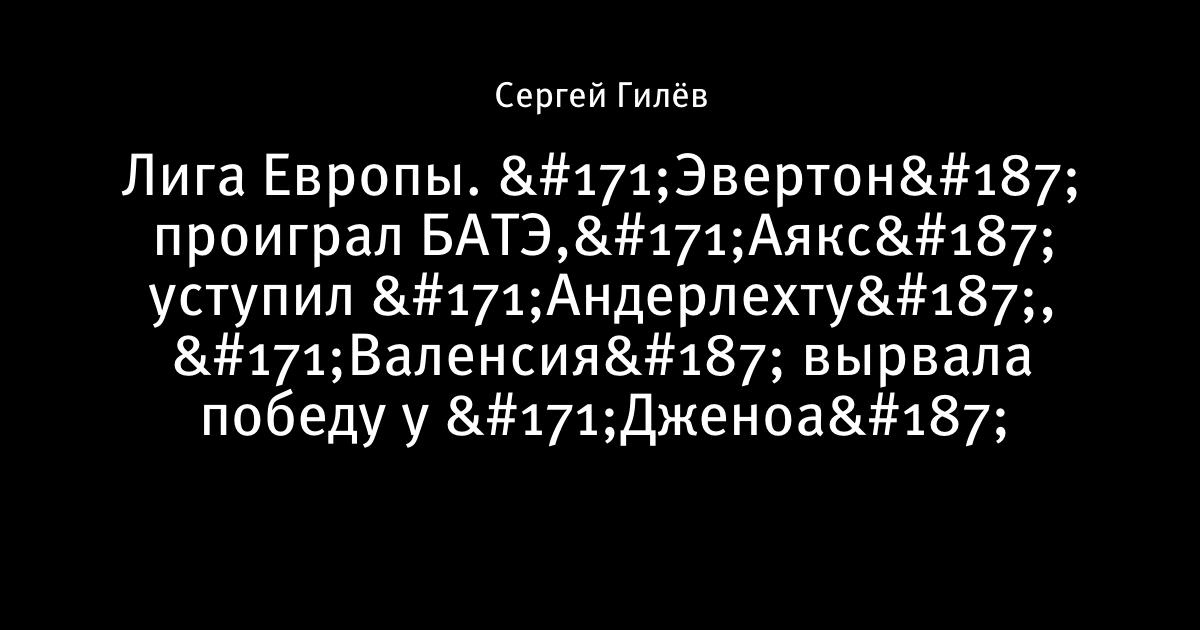 Лига Европы. «Эвертон» проиграл БАТЭ,«Аякс» уступил «Андерлехту», «Валенсия» вырвала победу у «Дженоа»