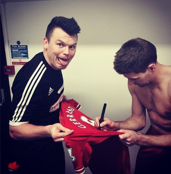 Стивен Джеррард и Йон-Арне Риисе после матча на «Крэйвен Коттедж»