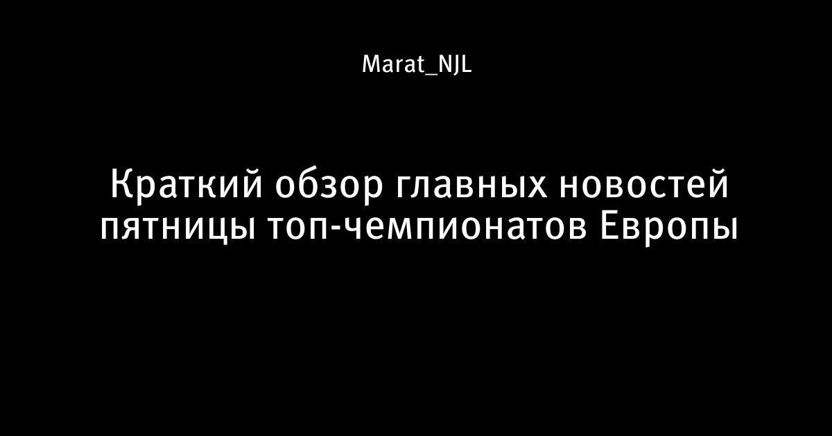 Представляю вам краткий обзор главных новостей пятницы топ-чемпионатов Европы.
