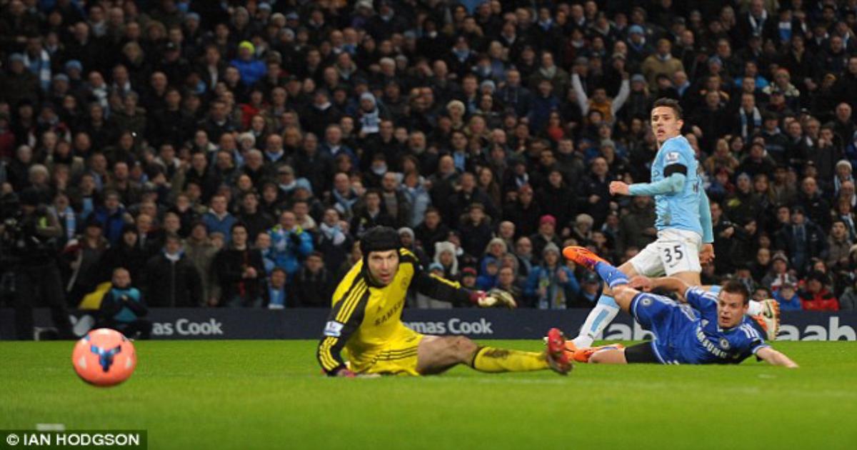 2. Одним из главных факторов, предопределивших победу Челси в предыдущем матче, называлась игра Неманьи Матича. И действительно, серб в тот вечер буквально съел Сильву, но на сей раз именно его позиционная ошибка привела к первому и столь важному, как оказалось, голу. Матич потерял из виду испанца, что позволило Сити вчетвером выкатиться на защиту Челси и превосходно разыграть мяч до его попадания в сетку. Отметим здесь и рискованный (в случае потери синие могли ринуться в контратаку), но все-таки дошедший до партнера пас Клиши.