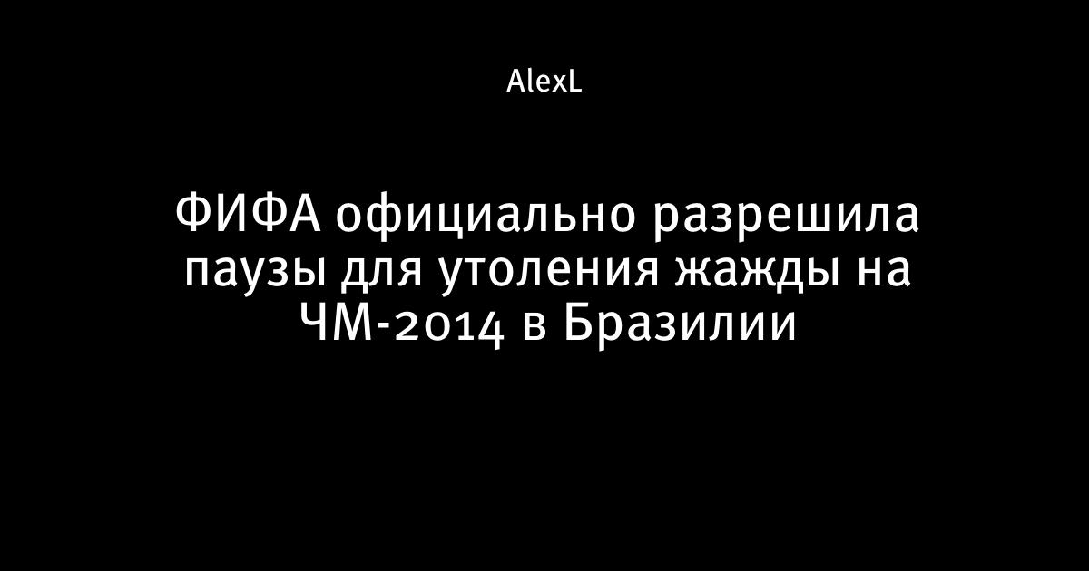 ФИФА официально разрешила паузы для утоления жажды на ЧМ-2014 в Бразилии. Изначально инициатива о введении такой меры в игровые правила турнира исходила от наставника сборной Италии Чезаре Пранделли. Такие перерывы будут устраиваться каждые полчаса и длиться 3-4 минуты. Решение было основано на научных данных и проведенных эскпериментах медицинского персонала ФИФА.