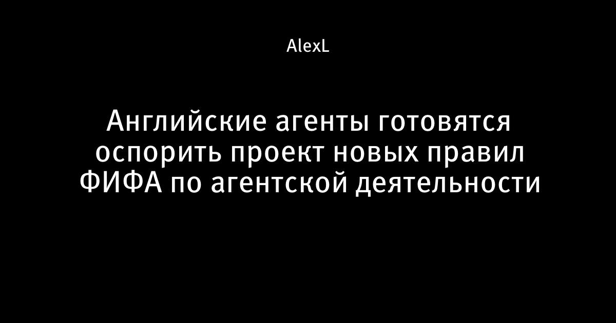 Ассоциация футбольных агентов Англии (Association of Football Agents -AFA) собирается спорить проект правил ФИФА о деятельности посредников по спортивным трансферам, указывая в том числе на нарушения законодательства ЕС. Проект правил будет рассматриваться Исполкомом ФИФА уже в марте текущего года, и, высока вероятность, что система лицензирования деятельности агентов национальными спортивными федерациями будет отменена. Новые правила, замаячившие на горизонте в прошлом году, предлагают систему регистрации футбольных агентов (посредников).