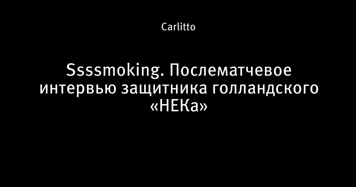 23 февраля 2014, 11:41 Ssssmoking. Послематчевое интервью защитника голландского «НЕКа» Автор Carlitto Этот пост опубликован в блоге на Трибуне Sports.ru. Присоединяйтесь к крупнейшему сообществу спортивных болельщиков! Другие посты блога Телевизор 3.0 высшая лига Нидерланды Ренс ван Эйден НЕК