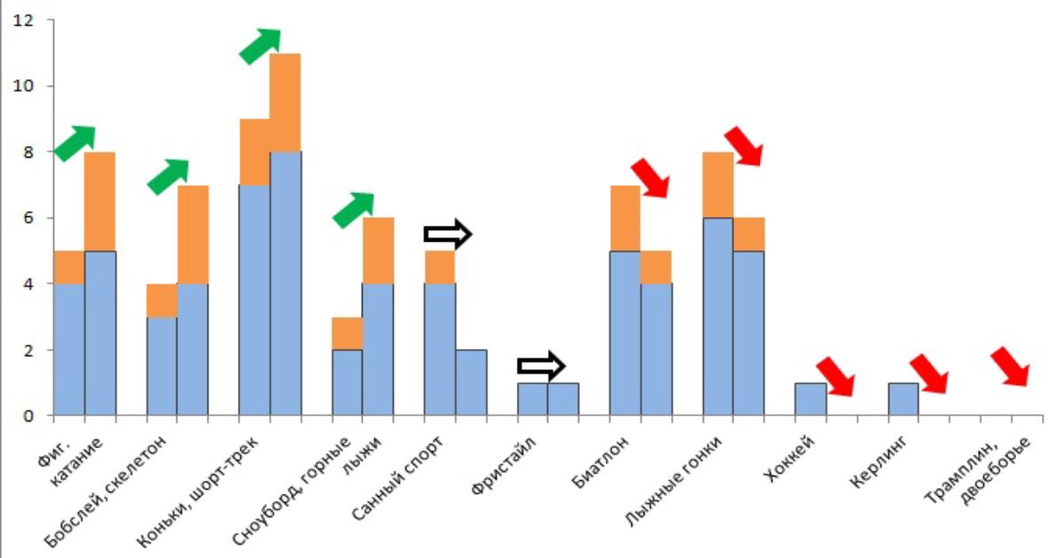 Прыгунам (топ-6) и двоеборцам (топ-30) поставили «немедальные» задачи, которые выполнить не удалось. Причем, медаль бы могла быть. Ирина Аввакумова, на которую не рассчитывали, за полтора месяца до начала Игр выиграла этап Кубка мира. Но попасть на подиум в Сочи ей не удалось.