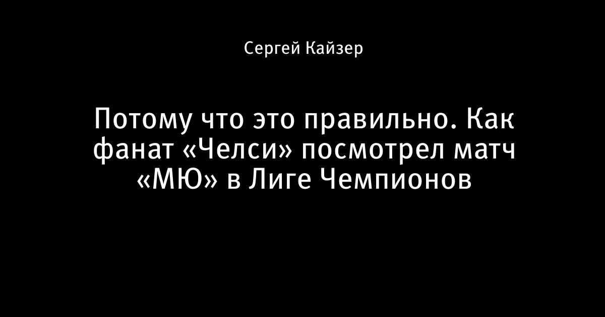 Потому что это правильно. Как фанат «Челси» посмотрел матч «МЮ» в Лиге Чемпионов