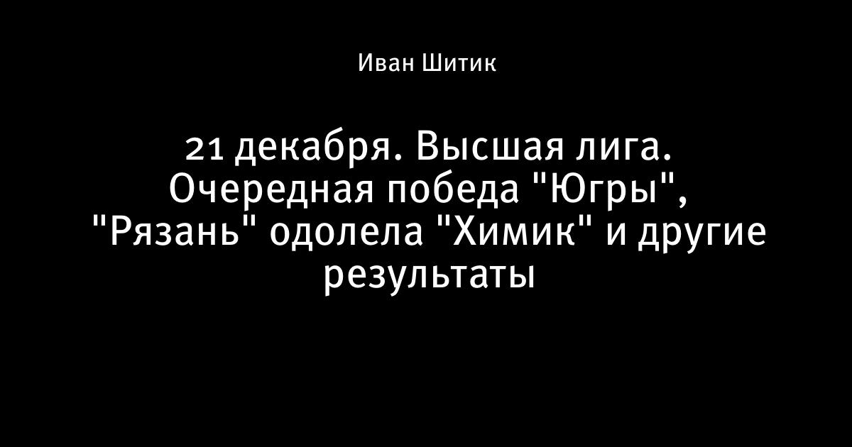 21 декабря. Высшая лига. Очередная победа "Югры", "Рязань" одолела "Химик" и другие результаты