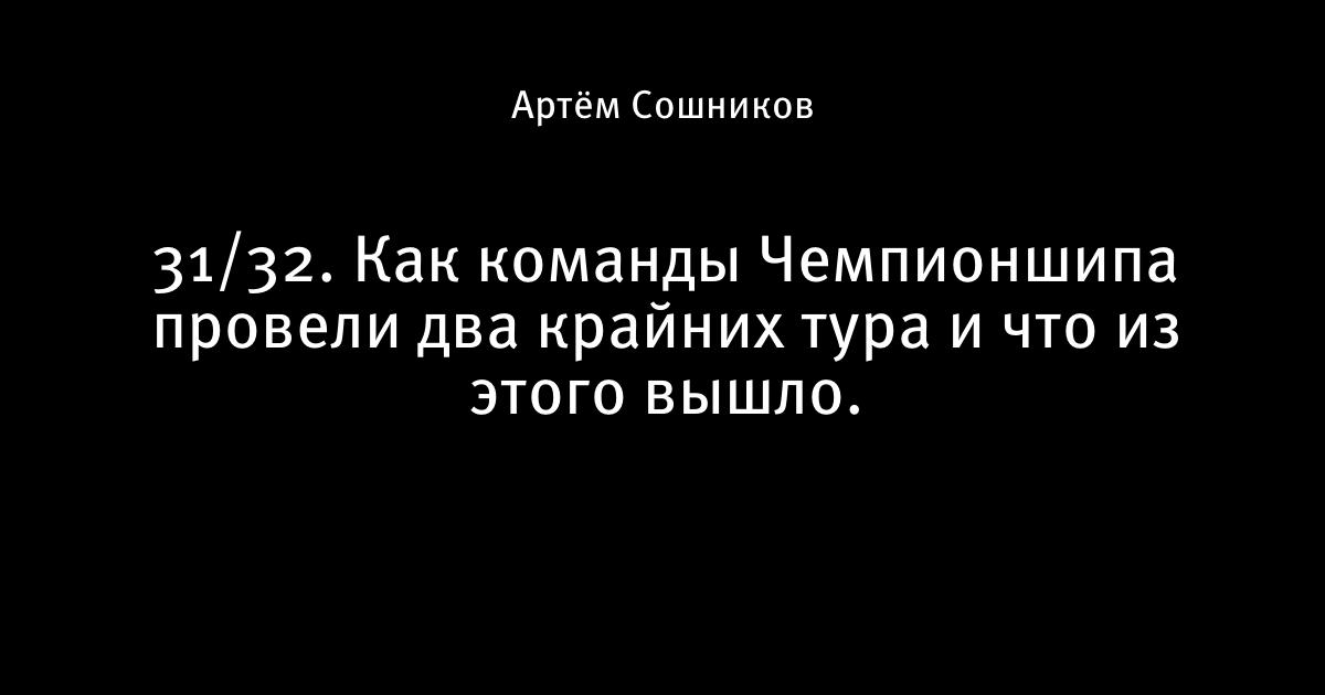 31/32. Как команды Чемпионшипа провели два крайних тура и что из этого вышло.