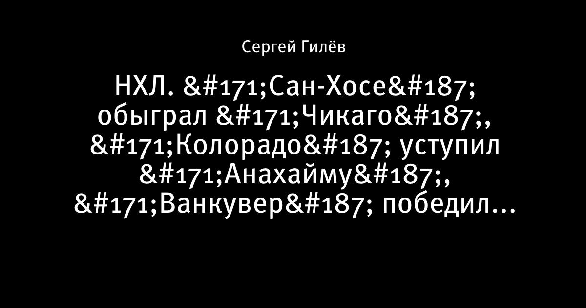 НХЛ. «Сан-Хосе» обыграл «Чикаго», «Колорадо» уступил «Анахайму», «Ванкувер» победил «Нэшвилл»
