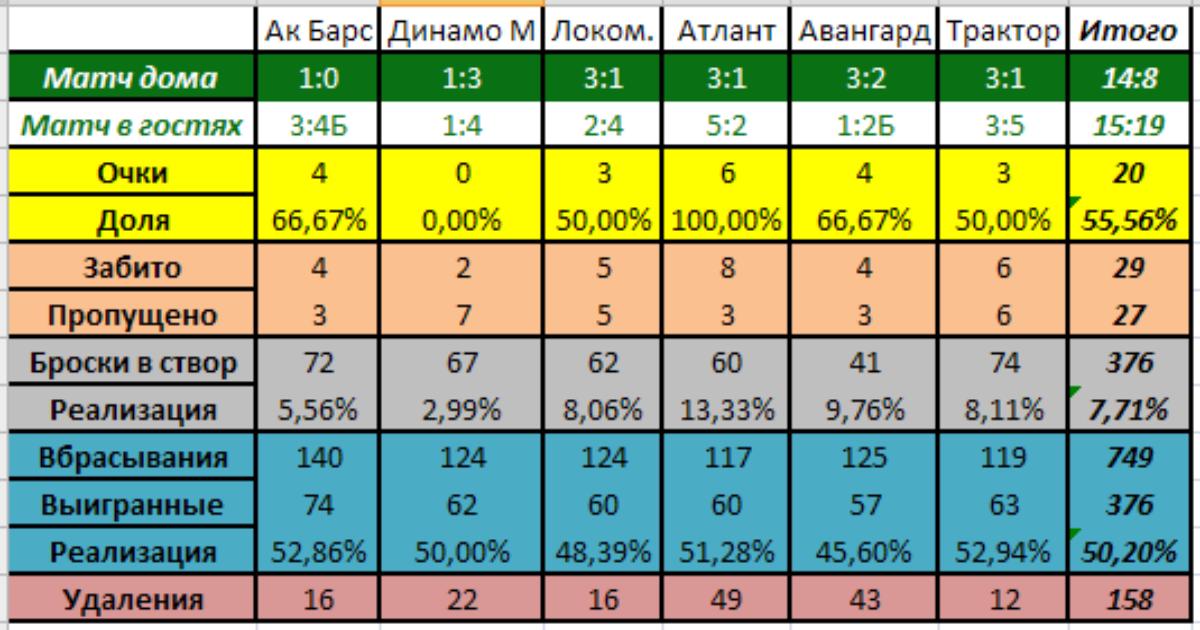 Мы добыли всего 58% очков. Много это или мало? У Динамо Москвы около 70%, например. Будем условно считать это стандартом качества. У нас, как видите, тоже ничего, но могли и лучше ведь. Но насчет каждой игры распыляться не стану.