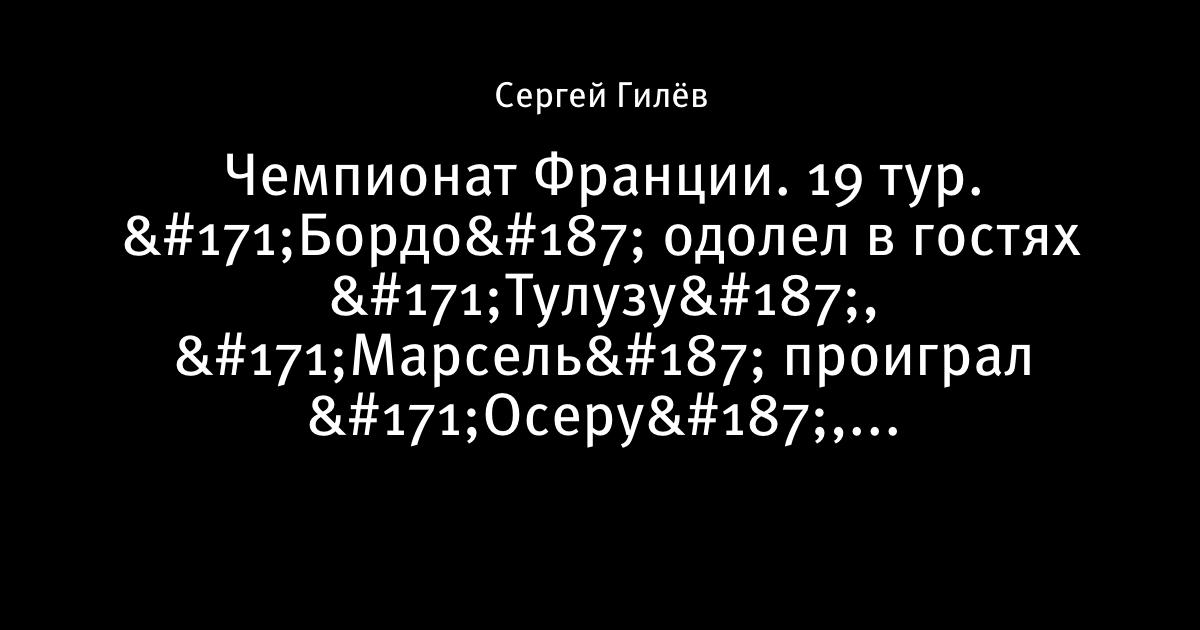 Чемпионат Франции. 19 тур. «Бордо» одолел в гостях «Тулузу», «Марсель» проиграл «Осеру», «Лион» уступил «Монпелье»