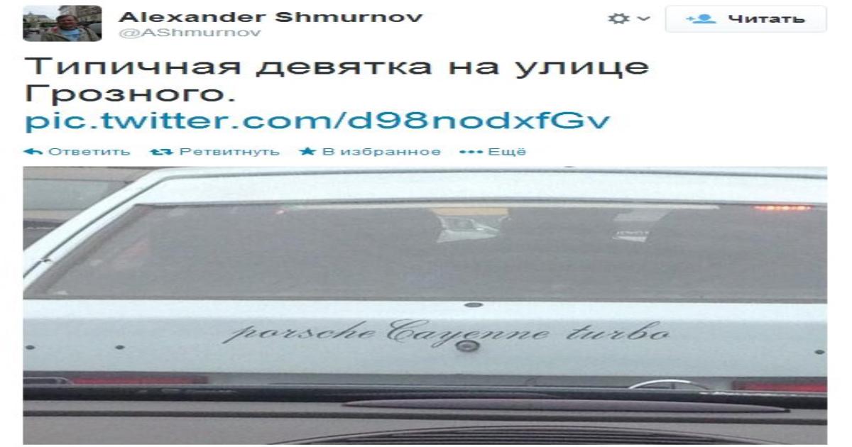 8 марта 2014, 15:43 Типичная девятка на улице Грозного Twitter Александра Шмурнова Автор tribuna.sports.ru Этот пост опубликован в блоге на Трибуне Sports.ru. Присоединяйтесь к крупнейшему сообществу спортивных болельщиков! Другие посты блога Телевизор 3.0