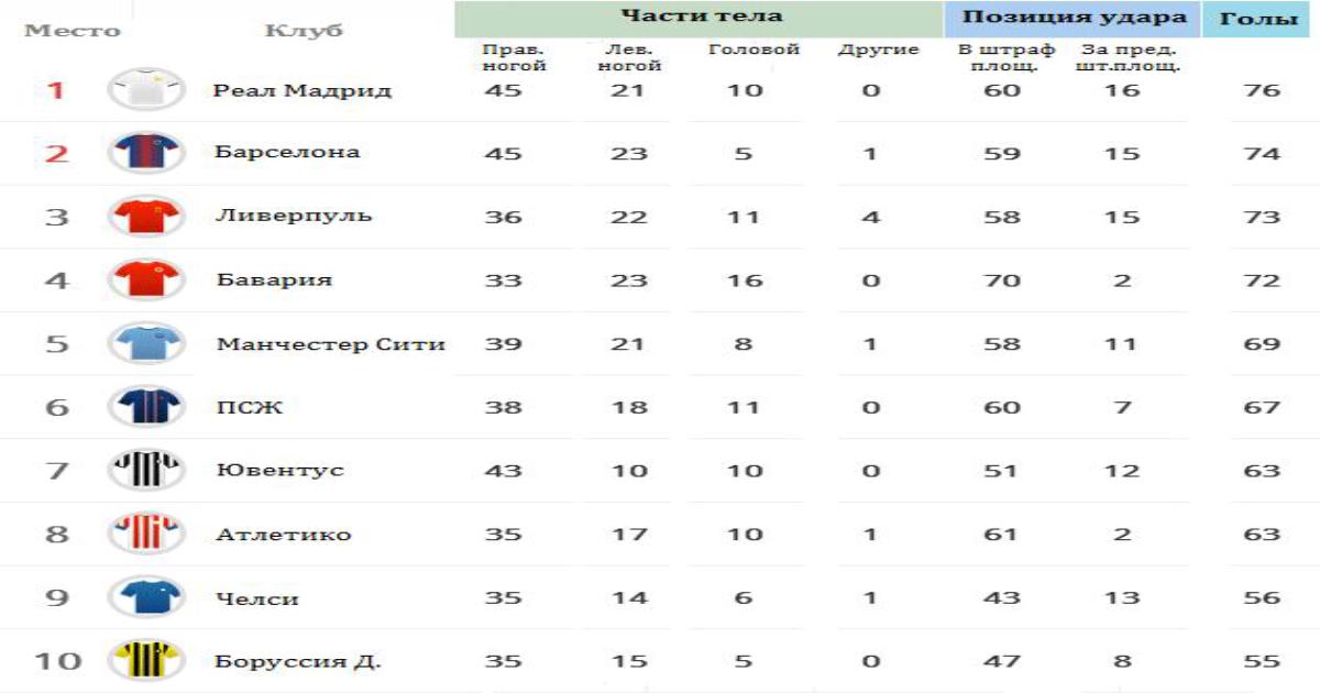 Топ 10 клубов Европы по 'забитым мячам' в этом сезоне