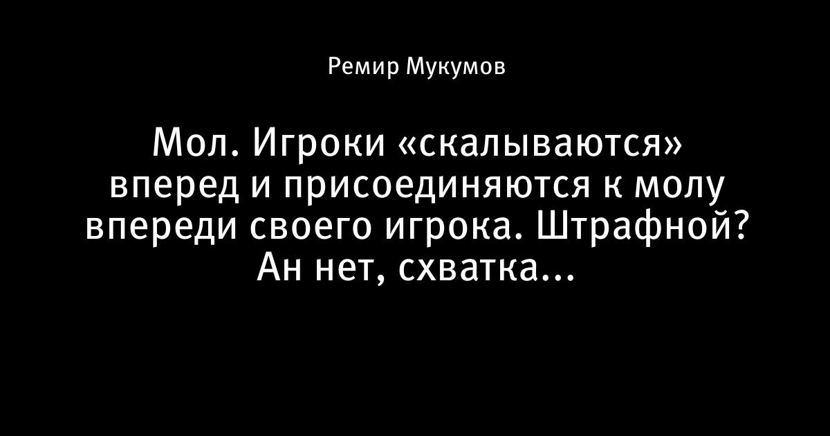 Всем показалось, что он решил наказать игрока под номером 20 российской сборной: было очевидно, что игроки под номером 6 и под номером 20 скололись и оказались впереди мола и затем присоединился к молу со стороны своего же переднего игрока в моле.