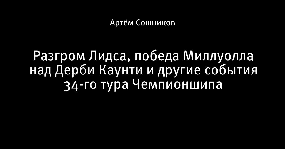 Разгром Лидса, победа Миллуолла над Дерби Каунти и другие события 34-го тура Чемпионшипа