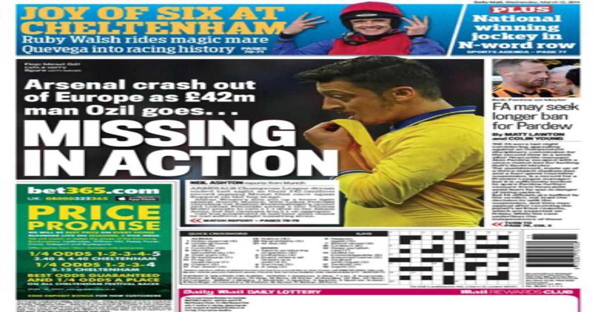 Несмотря на травму, Озила раскритиковали в английской прессе. Фото с обложек Daily Mail, The Mirror, Daily Star.