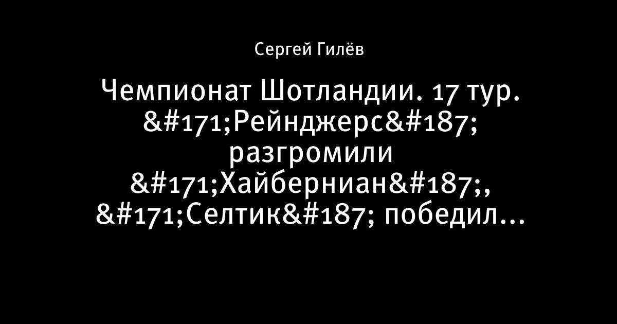 Чемпионат Шотландии. 17 тур. «Рейнджерс» разгромили «Хайберниан», «Селтик» победил «Гамильтон»
