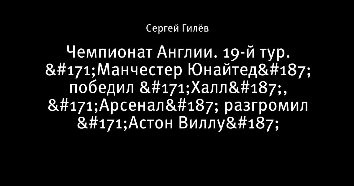 Чемпионат Англии. 19-й тур. «Манчестер Юнайтед» победил «Халл», «Арсенал» разгромил «Астон Виллу»