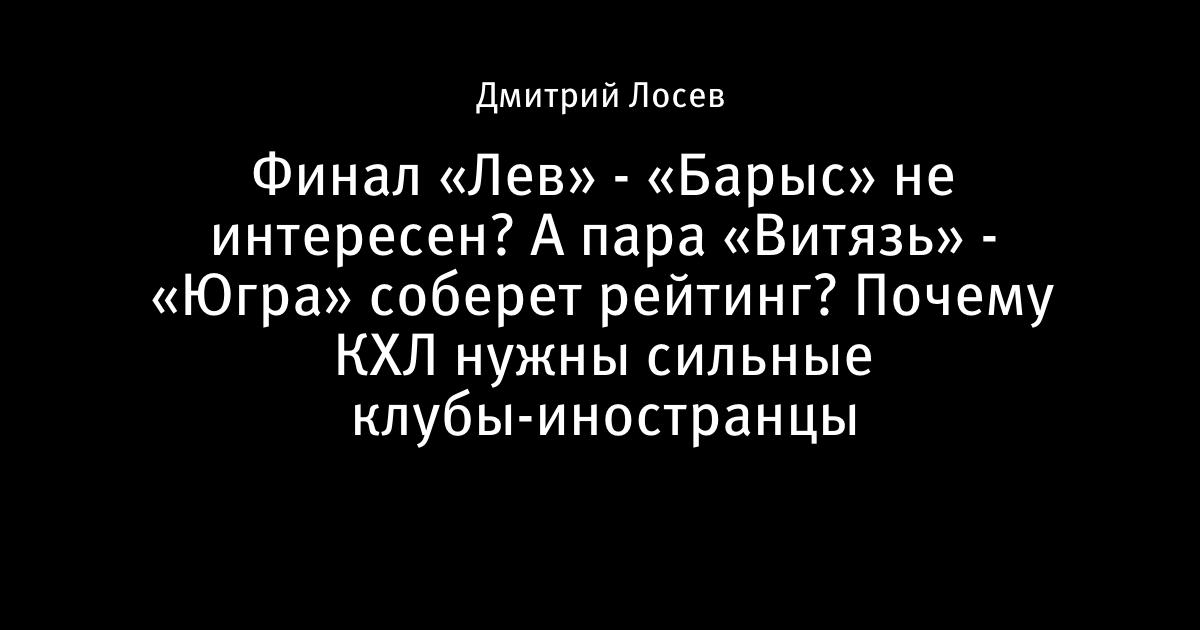 Финал «Лев» - «Барыс» не интересен? А пара «Витязь» - «Югра» соберет рейтинг? Почему КХЛ нужны сильные клубы-иностранцы