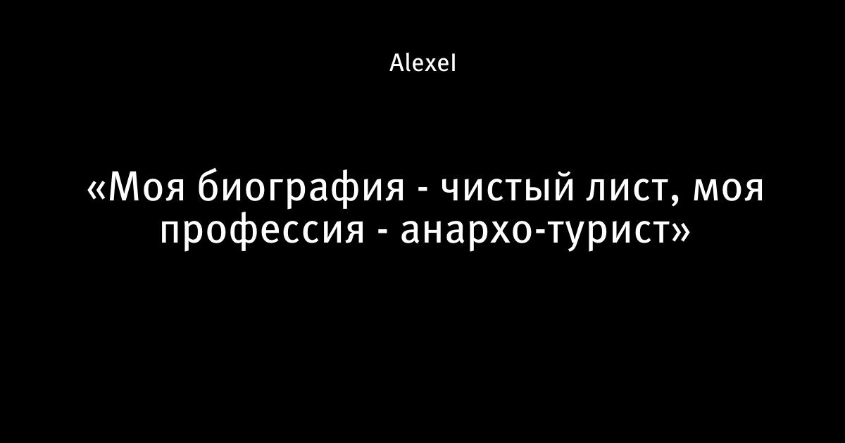 «Моя биография - чистый лист, моя профессия - анархо-турист»