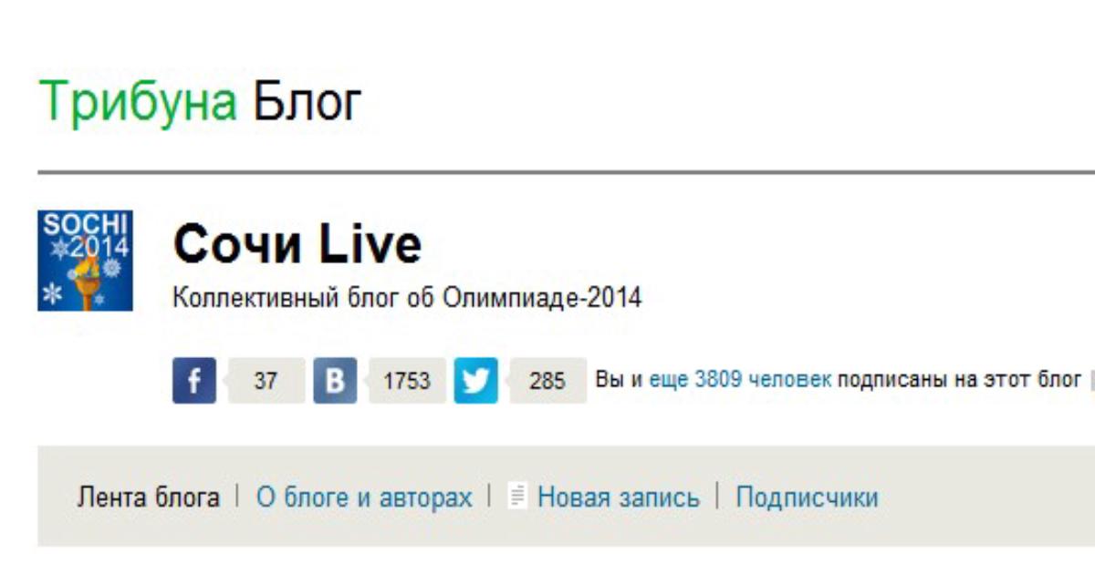 История богатая. Сначала это был "блог о блогах Трибуны". Потом в него в основном постили социальные редакторы – получалось что-то вроде дополнения к Административному блогу. Потом его решили сделать открытым – коллективным "блогом о блогах". Дальше в нем велась осенняя Школа журналистики. И, наконец, в нем сделали коллективный блог про Олимпиаду "Сочи Live".