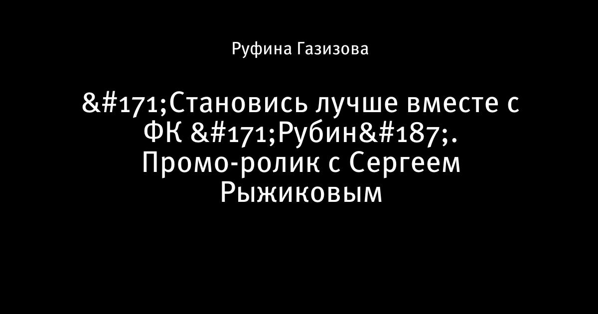 24 марта 2014, 11:07 «Становись лучше вместе с ФК «Рубин». Промо-ролик с Сергеем Рыжиковым 1 Автор Руфина Газизова Этот пост опубликован в блоге на Трибуне Sports.ru. Присоединяйтесь к крупнейшему сообществу спортивных болельщиков! Другие посты блога Футбольный клуб «Рубин» Рубин Сергей Рыжиков