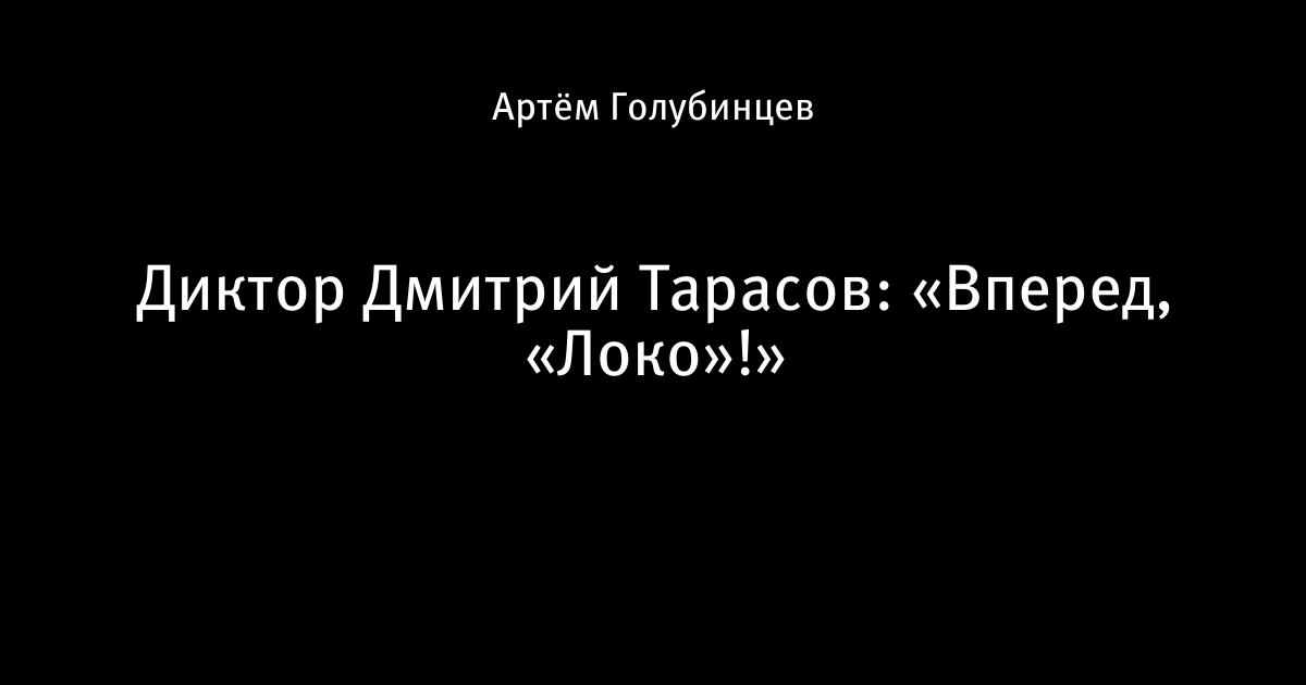 24 марта 2014, 22:25 Диктор Дмитрий Тарасов: «Вперед, «Локо»!» Автор Артём Голубинцев Этот пост опубликован в блоге на Трибуне Sports.ru. Присоединяйтесь к крупнейшему сообществу спортивных болельщиков! Другие посты блога Телевизор 3.0 видео премьер-лига Россия Локомотив Дмитрий Тарасов РЖД Арена