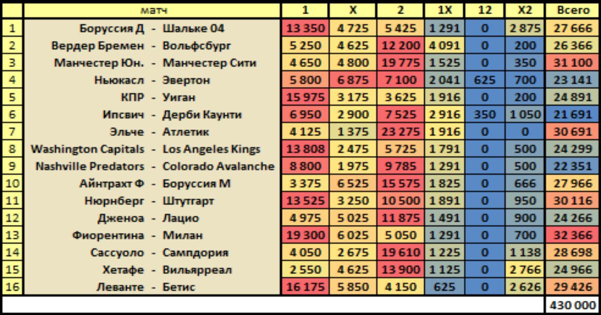 P.S. Экселька для самостоятельного подсчета результов (на вкладке линия ставим счет, на вкладке "итоги" жмем по тыцке "сортировка")
