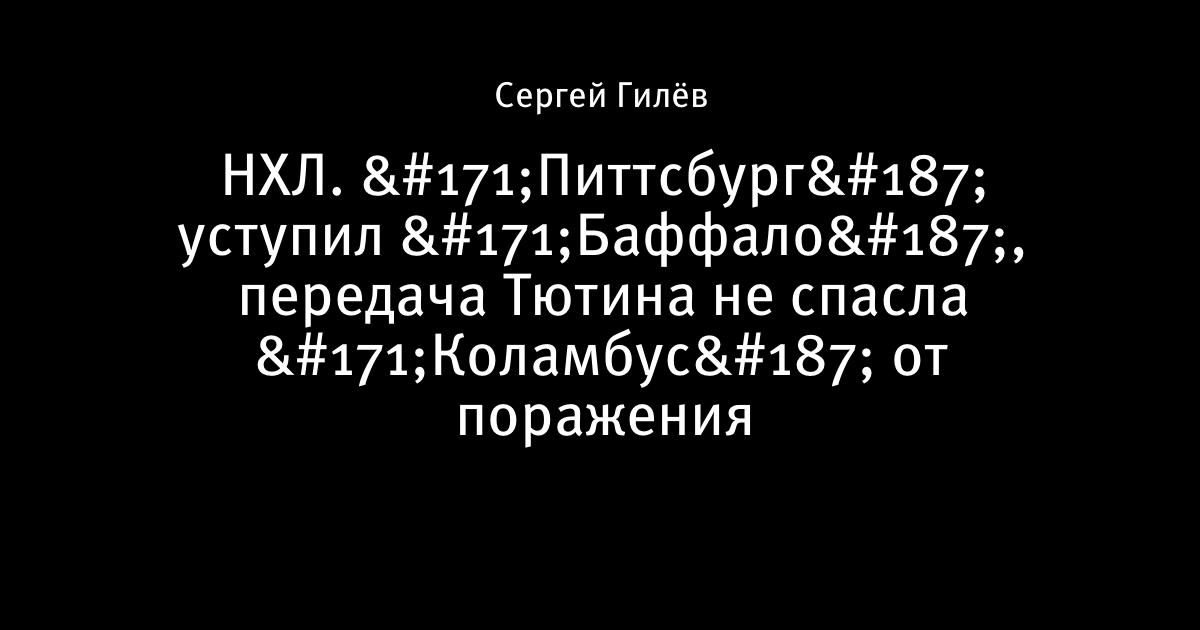 НХЛ. «Питтсбург» уступил «Баффало», передача Тютина не спасла «Коламбус» от поражения