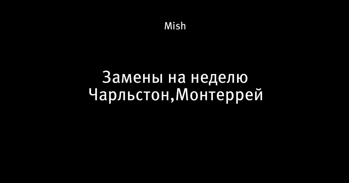 В этом посте вы можете писать замены на неделю Чарльстон,Монтеррей и только замены, ни каких вопросов! Все вопросы можно задавать в посте о сетках, который будет опубликован позже или в предыдущем посте, но только не в посте с заменами. Все комментарии, которые будут не с заменами, из этого поста будут удалены.
