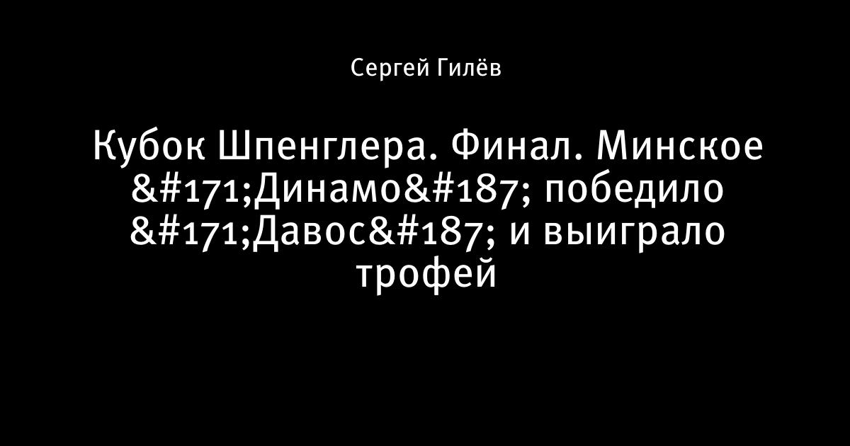 Кубок Шпенглера. Финал. Минское «Динамо» победило «Давос» и выиграло трофей