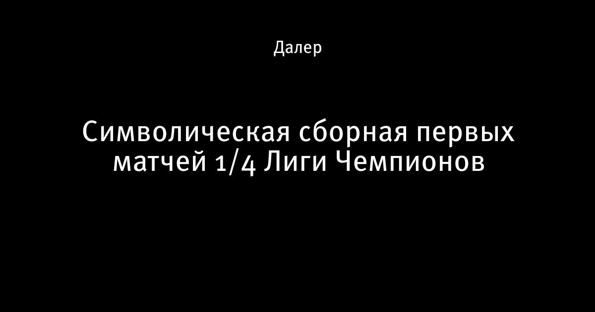 3 апреля 2014, 11:58 Символическая сборная первых матчей 1/4 Лиги Чемпионов Автор Далер Этот пост опубликован в блоге на Трибуне Sports.ru. Присоединяйтесь к крупнейшему сообществу спортивных болельщиков! Другие посты блога Телевизор 3.0 Лига чемпионов УЕФА