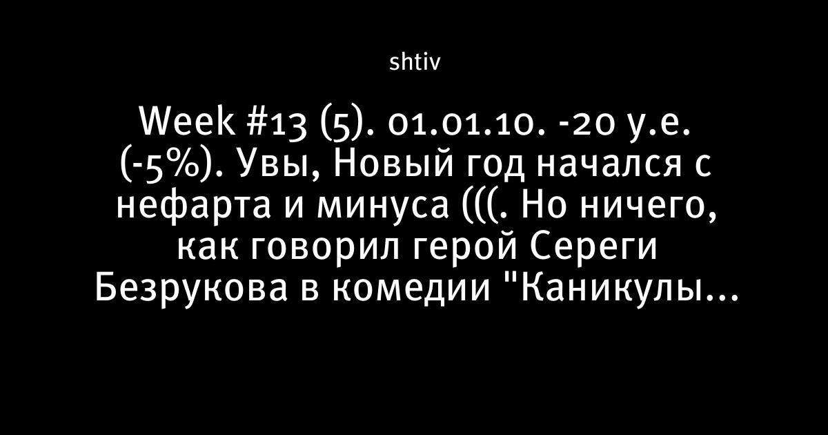 Week #13 (5). 01.01.10. -20 у.е. (-5%). Увы, Новый год начался с нефарта и минуса (((. Но ничего, как говорил герой Сереги Безрукова в комедии "Каникулы строгого режима": " Пройдет и по нашей улице инкассатор!" )))