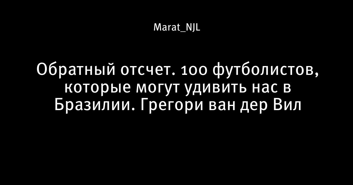 Обратный отсчет. 100 футболистов, которые могут удивить нас в Бразилии. Грегори ван дер Вил